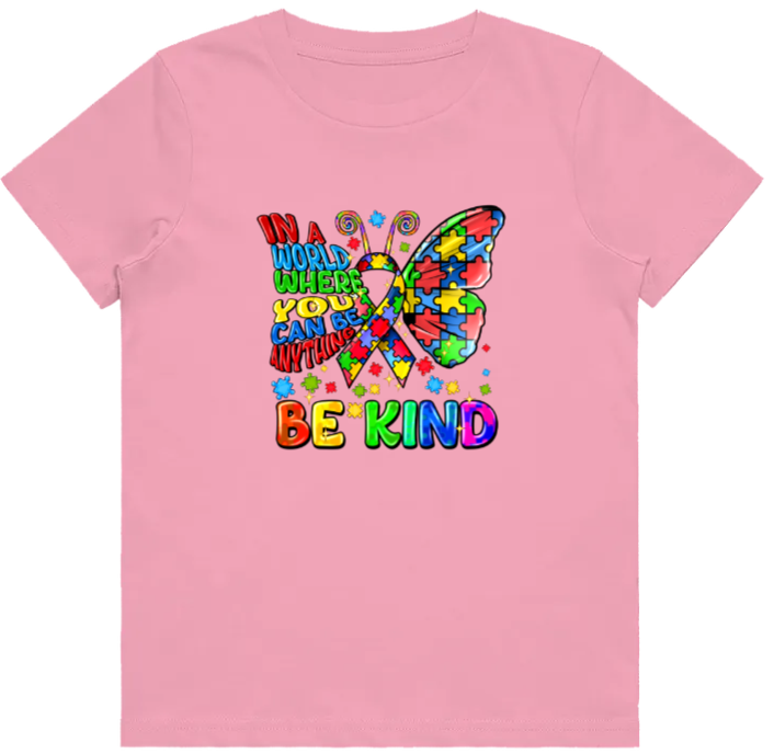 100% pre-shrunk cotton fabric Tshirts with front printed with Autism Butterfly Be Kind #19